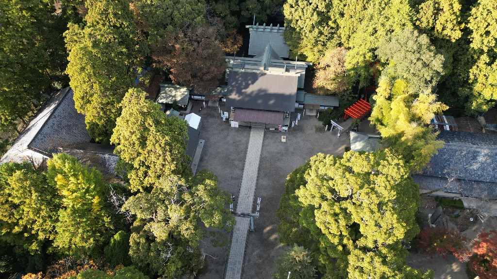 神社でドローン撮影