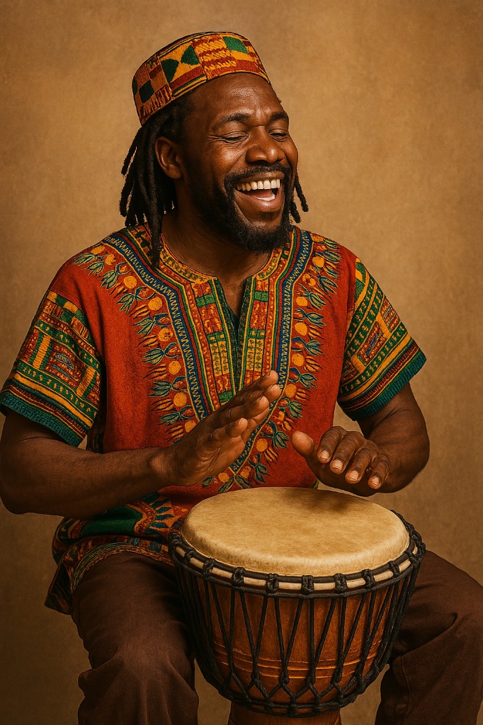 アフリカの民族楽器のエネルギッシュな太鼓のリズムと、アフリカンダンスの